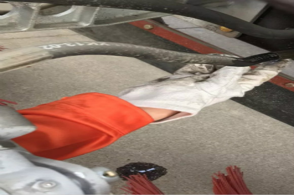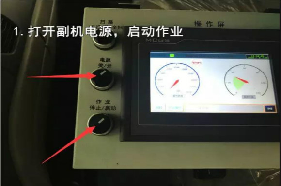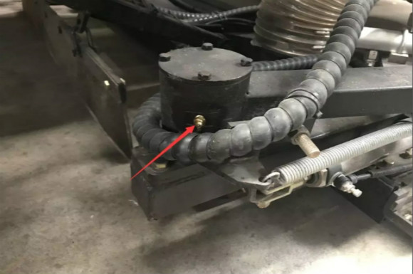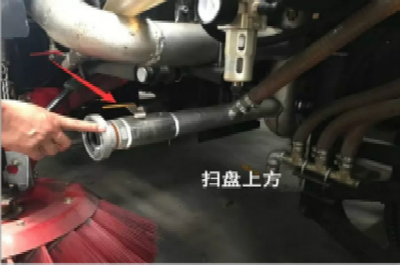 4.啟動(dòng)底盤(pán)發(fā)動(dòng)機(jī),采用氣吹水,吹干滯留在左右噴桿、吸盤(pán)噴水桿、后噴霧桿里的水分