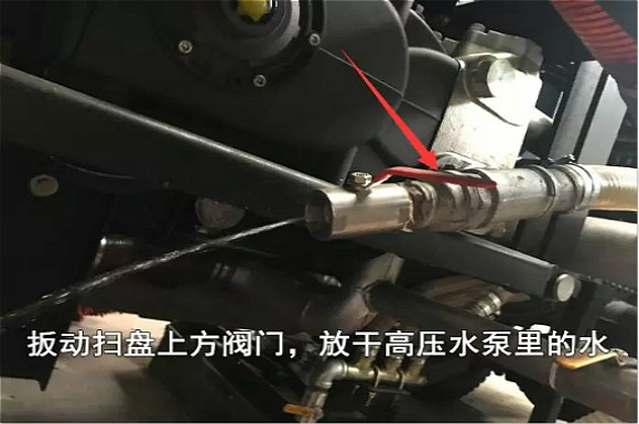 3.寒冷地區(qū)冬天車(chē)輛使用完畢后,應(yīng)放干水箱、水管、水路以及濾杯里面的水,防止凍裂(扳動(dòng)閥門(mén)扳手放水)
