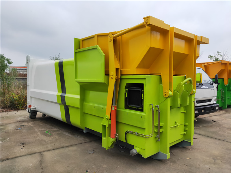 勾臂垃圾車(chē)【車(chē)廂可卸式垃圾車(chē)】車(chē)體和垃圾箱可完全分離,由液壓系統(tǒng)來(lái)完成收箱/放箱,在平日里可將車(chē)載垃圾箱放置到各個(gè)垃圾收集點(diǎn),待垃圾收集滿(mǎn)后,該車(chē)可直接開(kāi)赴收集點(diǎn),通過(guò)液壓系統(tǒng)的操控,可將垃圾車(chē)后座上加裝的勾臂放下,掛住站內(nèi)箱體前端的連接點(diǎn),將垃圾箱拉**車(chē)體的后座上,此時(shí)即可開(kāi)動(dòng)車(chē)輛,將垃圾運(yùn)送垃圾處理站內(nèi),進(jìn)行自卸式傾倒,優(yōu)點(diǎn)就是可一車(chē)配多斗,一輛車(chē)就可以維持?jǐn)?shù)個(gè)垃圾收集站的運(yùn)轉(zhuǎn),效率高,且箱體為密封式設(shè)計(jì),不會(huì)造成二次污染。